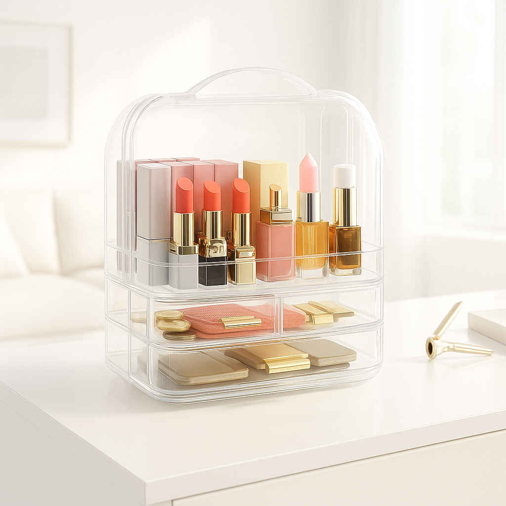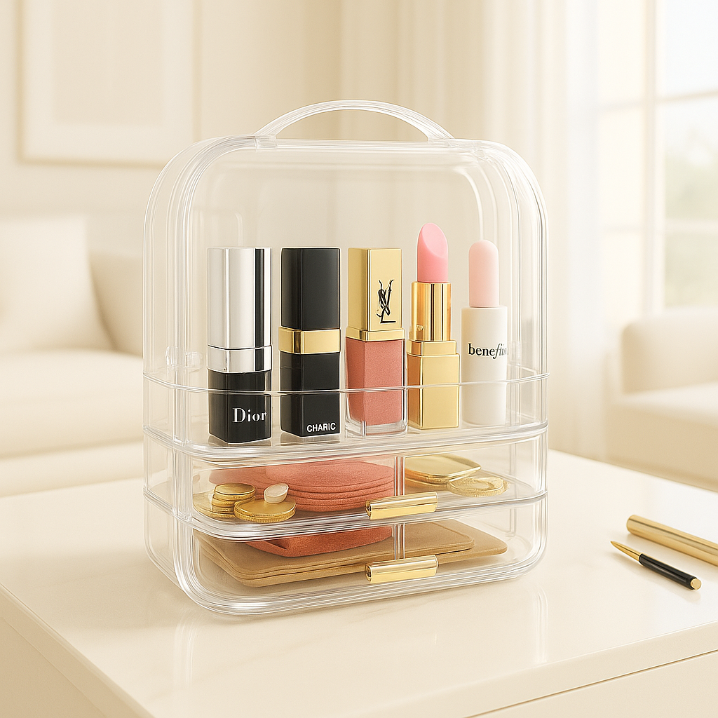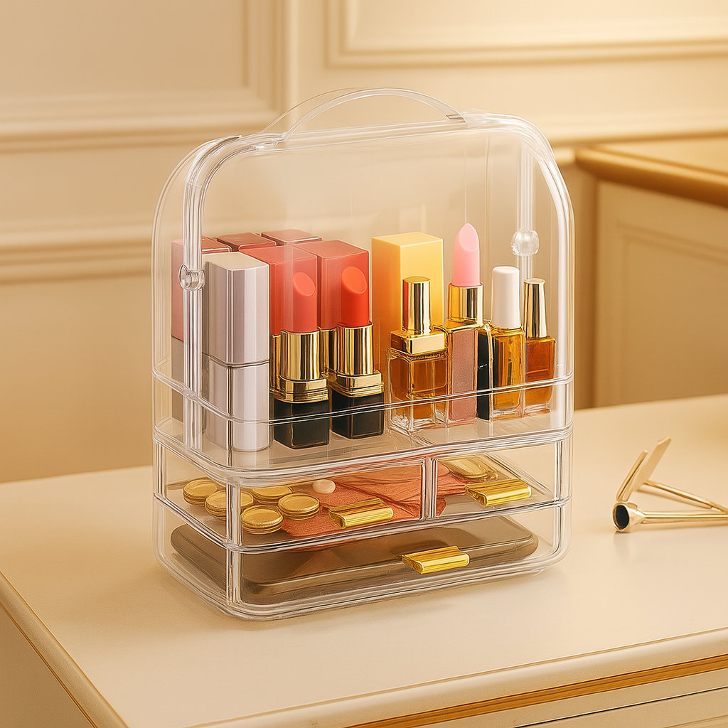 From lipsticks and perfumes to nail polishes and accessories — everything fits neatly in one place.